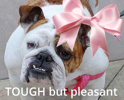 Idea / execution: In keeping with her tough, but pleasant personality, a bulldog with a pink bow philosophy, handout cards and simulated scene dialogues were created to help Cara learn – and enjoy – a fresh presentation of herself.
